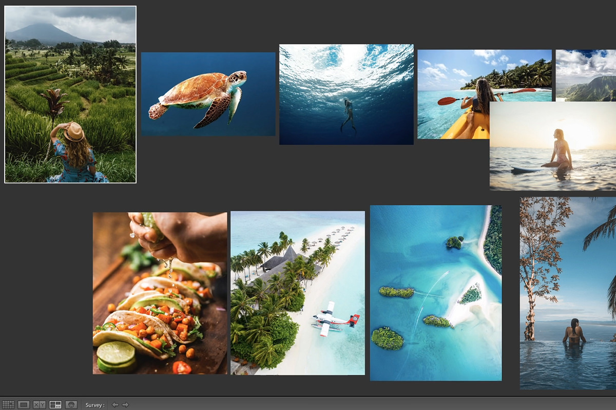 We recommend again using the Survey View to look at the remaining images in batches. Simply select photos in batches of four or five, and then apply a Color Label to ones you want to edit and share.