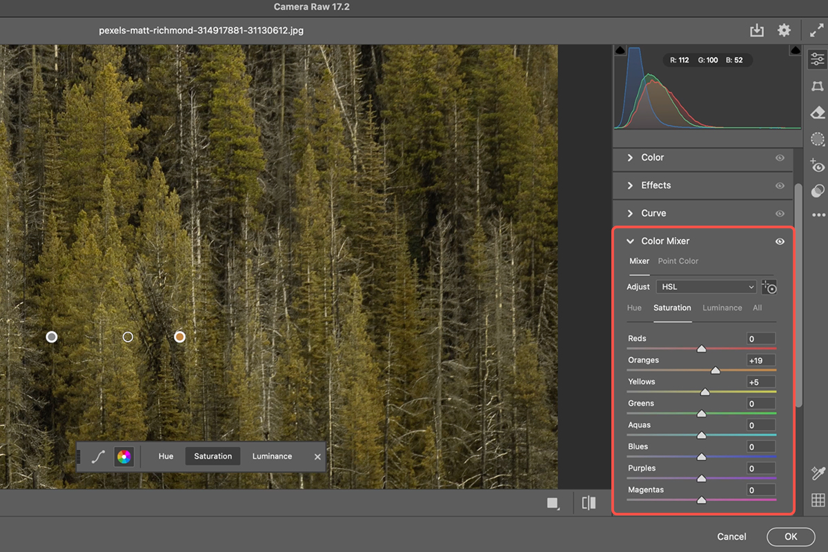 4. Once in the Camera Raw dialog box, navigate to the Color Mixer panel on the right-hand side.