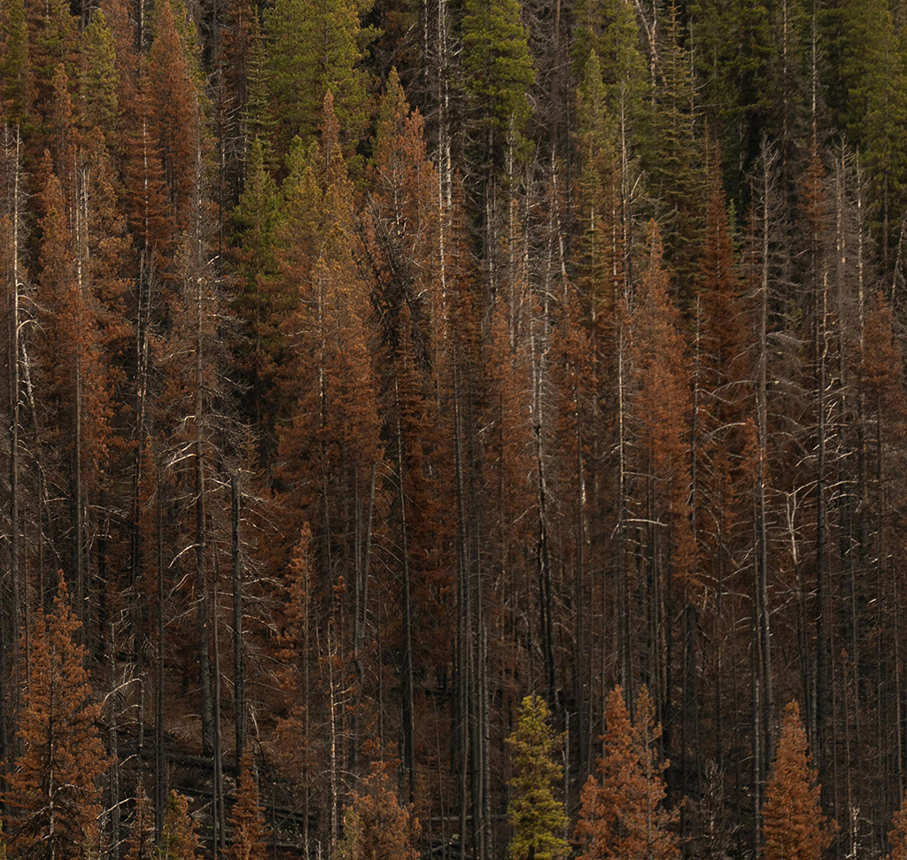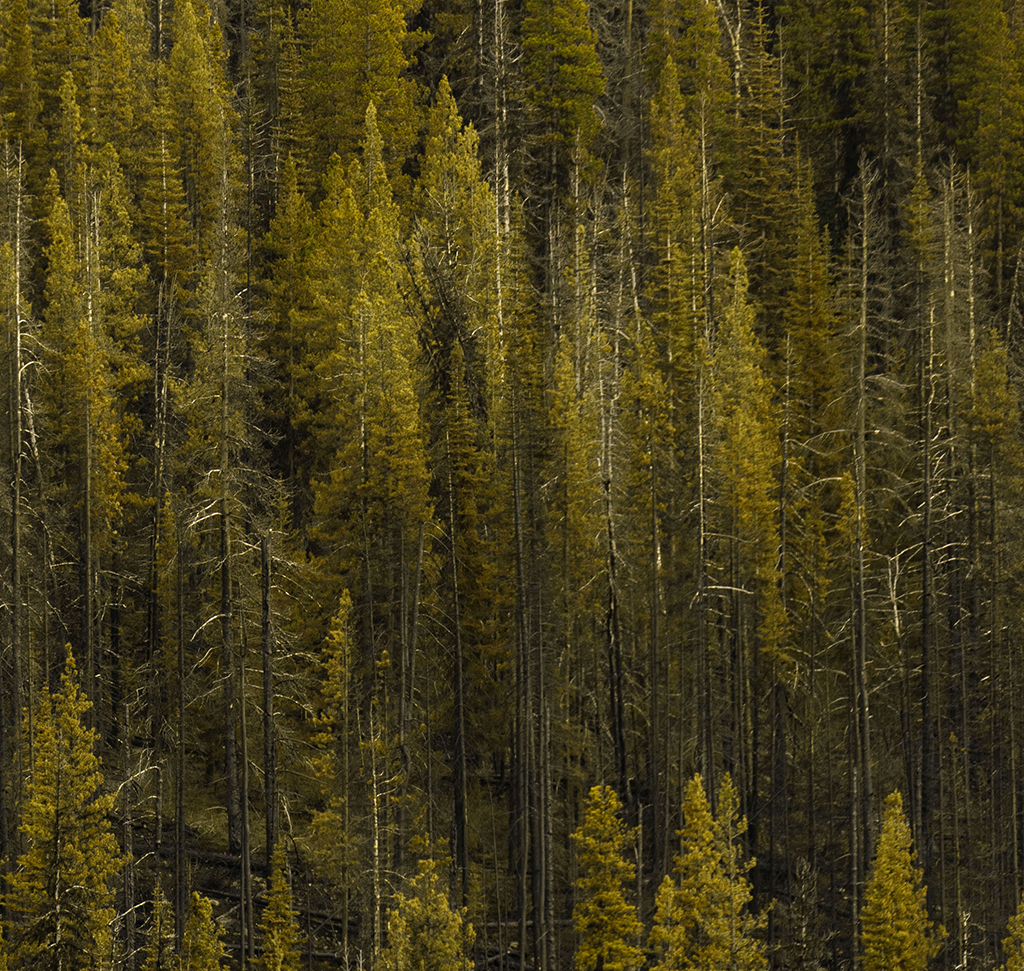 Hue: Click on the dull green areas of your trees and drag to the right to shift the yellow tones towards green, bringing out a more vibrant, healthy color.