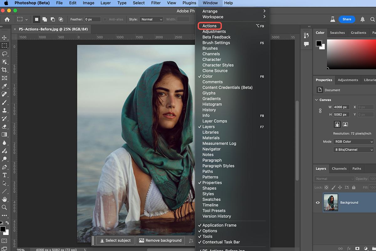 1. The first step is to open the Actions panel in Photoshop Beta. Make sure you have the app’s latest update.