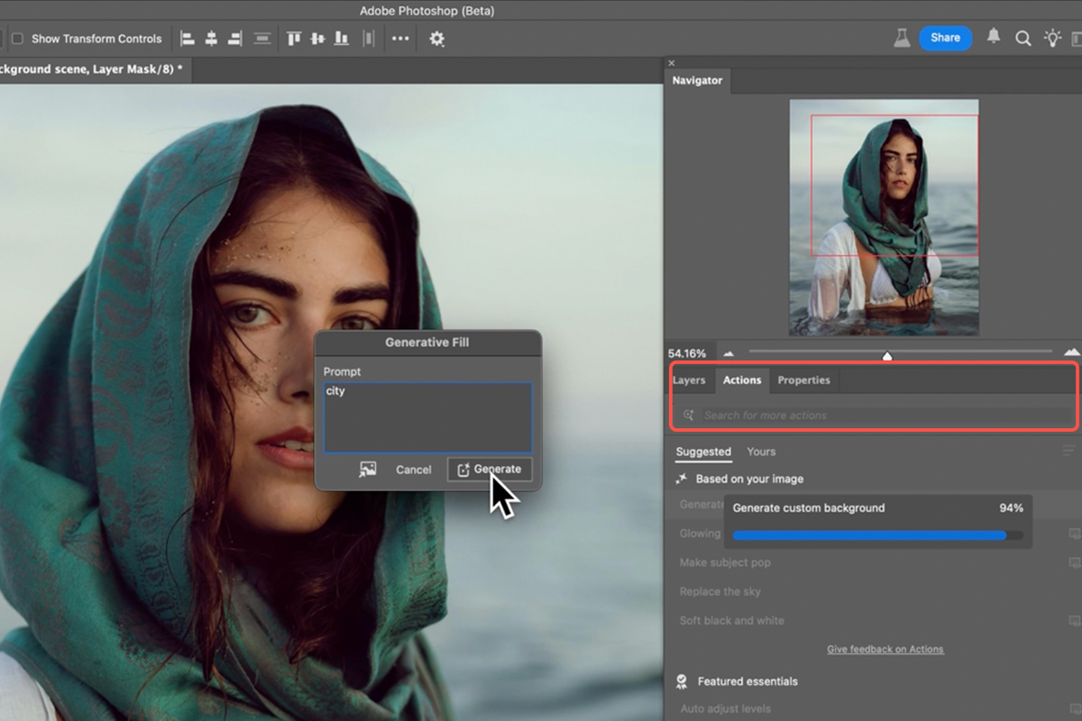 Explore the groundbreaking capabilities of Photoshop Beta’s new AI Actions panel!In this tutorial we’ll show you how to use intuitive text prompts to achieve sophisticated edits like background replacement and stylistic effects.