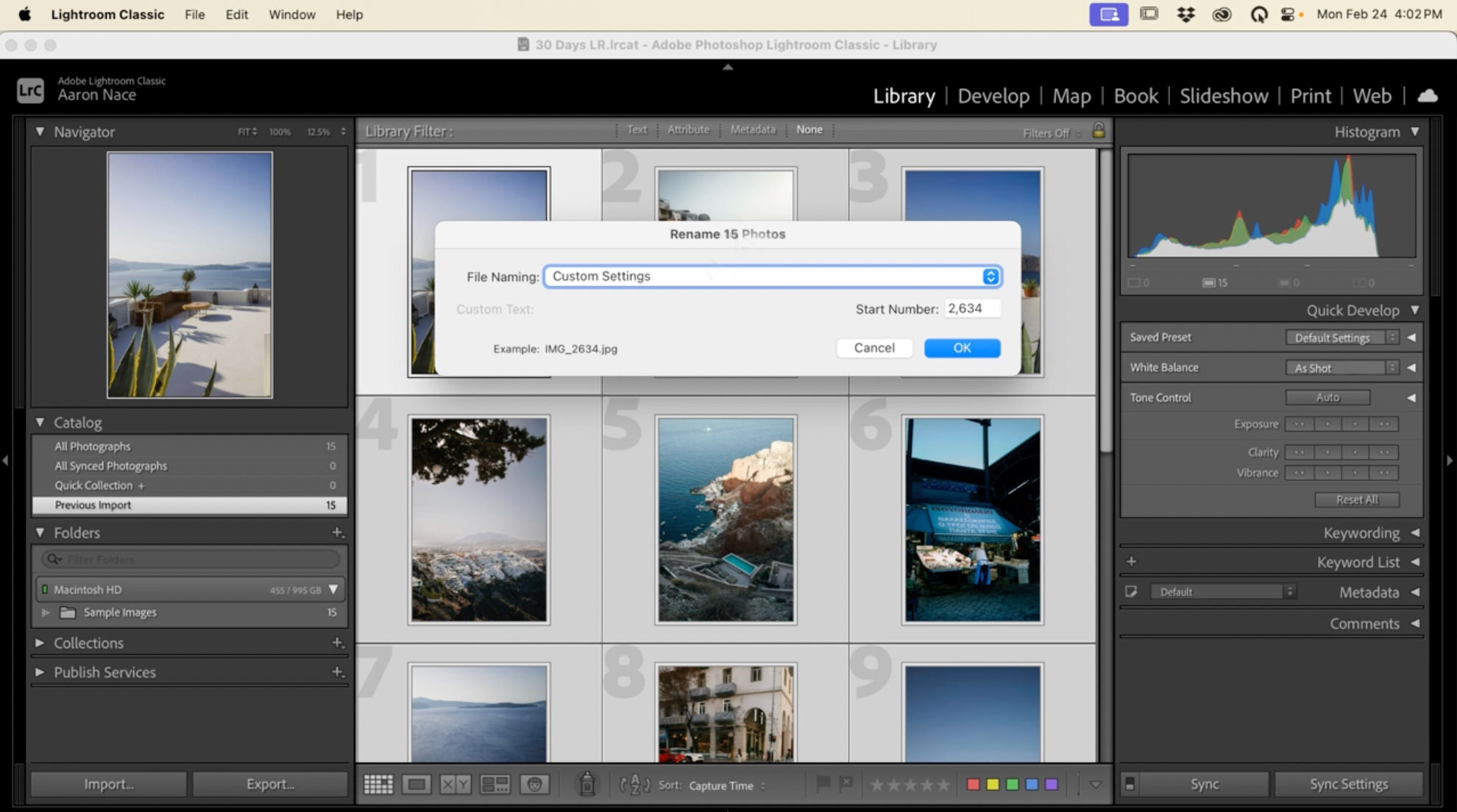 2. Select all images using Ctrl/Cmd+A, then press F2 or go to Library > Rename Photos.