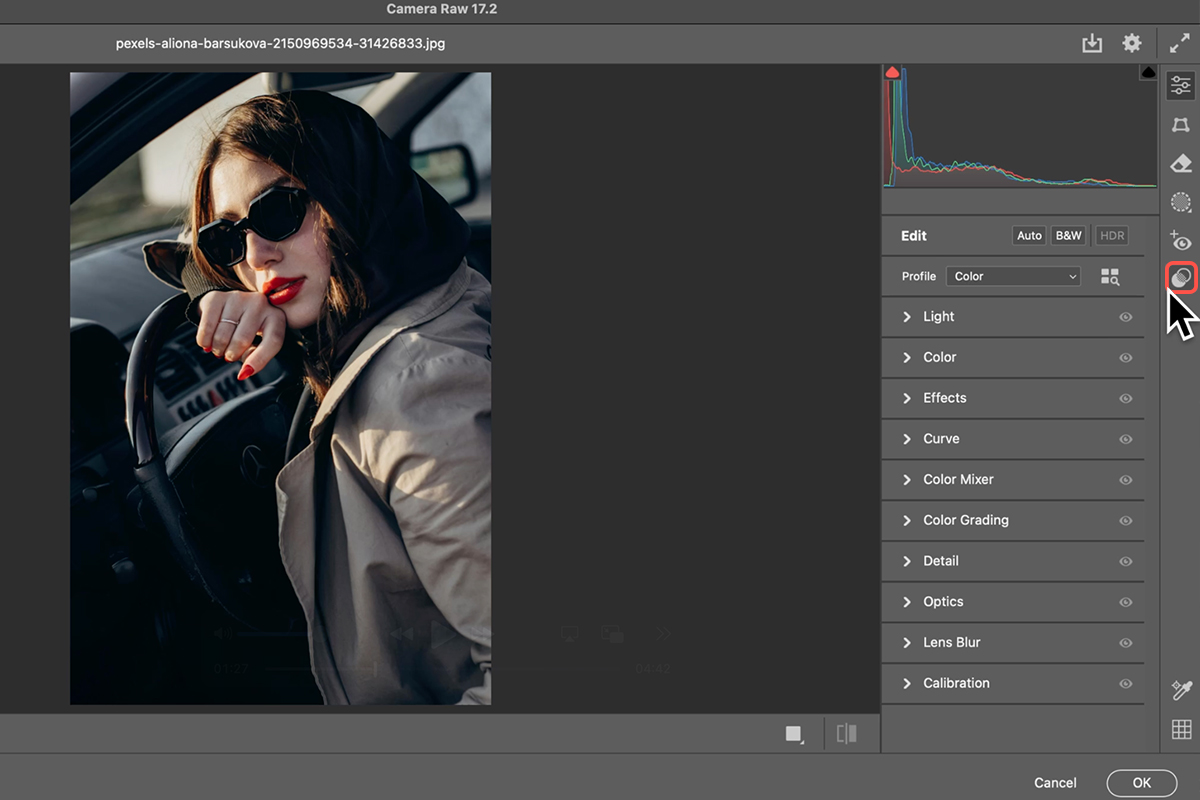 The beauty of this method is that you can easily toggle the effect on and off by clicking the eye icon next to the “Camera Raw Filter” in the Layers panel. To re-edit the color grading at any time, simply double-click on the “Camera Raw Filter” in the Layers panel, and it will reopen the Camera Raw interface with your previous settings.